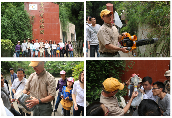 同时,Dietrich 博士与昆虫研究所部分师生一道在贵州省植物园、花溪公园等地进行了昆虫标本的采集活动。在采集过程中,Dietrich 博士给大家演示了最新的吸虫采集器,并将他带来的吸虫器赠送给了昆虫研究所。