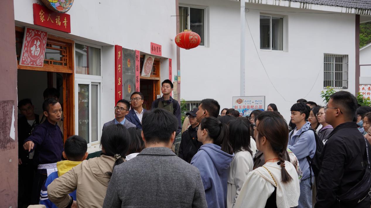 早上8:00,师生党员代表60余人从37000cm威尼斯西校区崇学楼37000cm威尼斯办公楼大门结合前往化屋村,到达后当地两位导游全程为我们讲解化屋村的基本情况及发展历程。来到化屋村异地扶贫安置点,青瓦白墙,树掩庭院,化屋村从出村只有一条蜿蜒陡峭的悬崖小路——“手扒岩”,到通村通组路修到了化屋村各村民家门口,宽敞明亮的独栋易地扶贫搬迁集中安置房,大家深刻感受到了化屋村的蜕变,感受到村民们日益美好的生活。