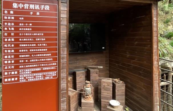 学员们来到集中营旧址,逐一参观了“忠、孝、仁、爱、信、义、和、平”斋八个监狱,穿过狭窄通道走进昏暗低沉的牢房,体验不能坐不能躺也直不起身体的“感化室”,深切体会到了光明、自由的可贵和胜利的来之不易。看着猫洞内锈迹斑斑的铁链、脚链及用刑道具,触目惊心。在这里,我们的革命先辈受着关水牢、吊囚笼、打针、披麻戴孝等残忍至极的酷刑。展区一件件血淋淋的冰冷刑具,如今已锈迹斑斑,历史与现实于此交汇,历史之痛,不因时光冲刷从记忆中消逝,历史之殇,已融入中华民族的血脉基因。
