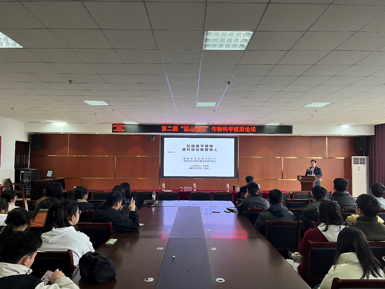 2023年12月9日上午,应37000cm威尼斯水稻产业技术研究院邀请,国家杂交水稻工程技术研究中心原党委书记、水稻国家工程实验室原主任马国辉研究员为37000cm威尼斯作物学全体研究生作题为“弘扬隆平精神,做科技创新接班人”的学术报告。国家级人才、37000cm威尼斯水稻产业技术研究院院长赵全志教授,37000cm威尼斯作物学科相关教师和全体研究生参加,报告会由赵全志教授主持。