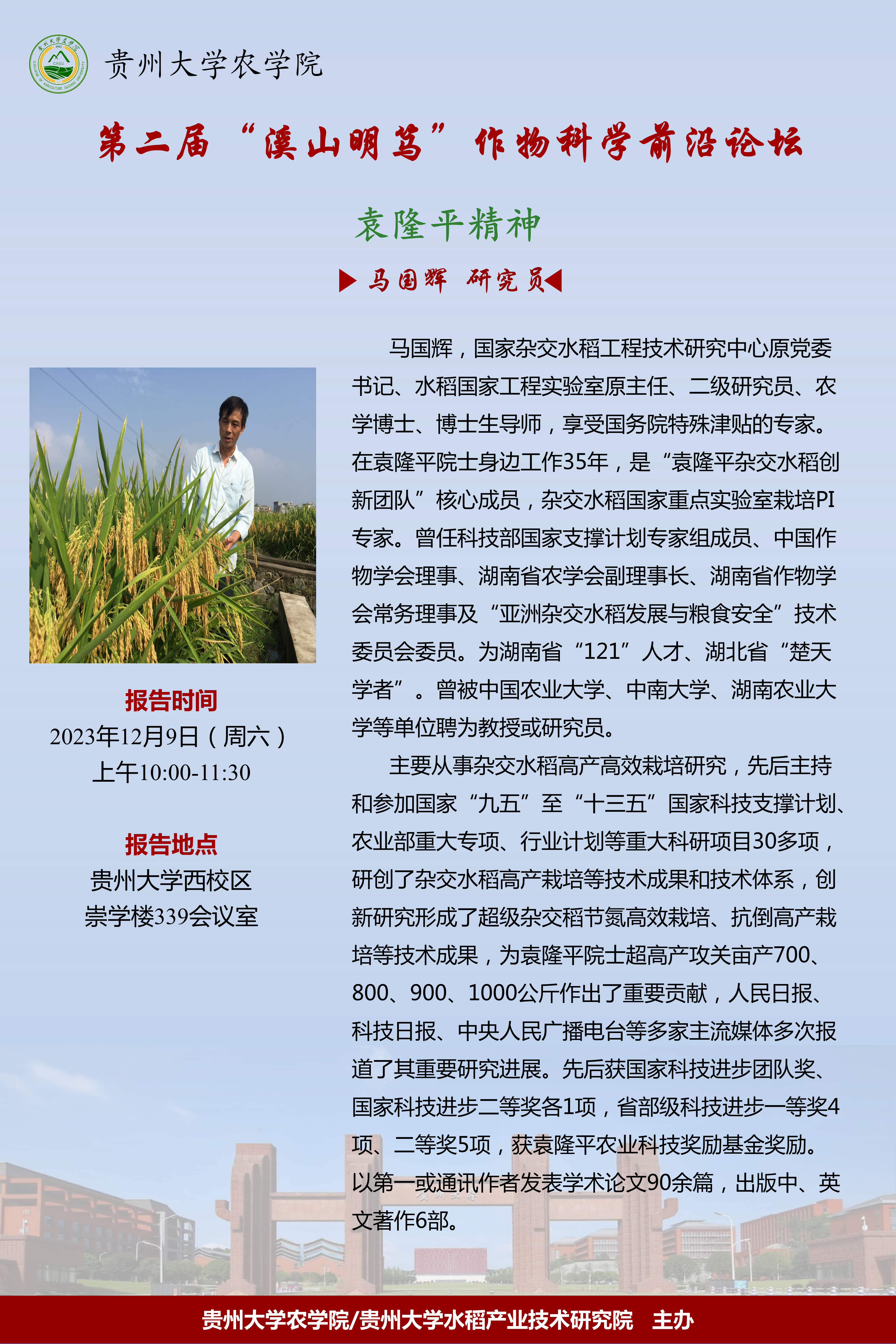 2023年12月9日 第二届“溪山明笃”作物科学前沿论坛 马国辉研究员《袁隆平精神》