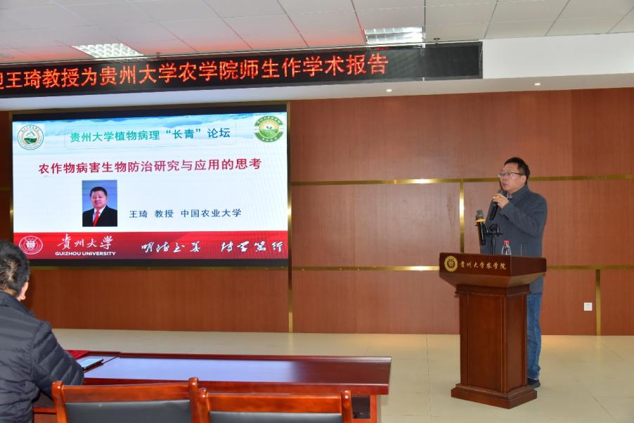12月17日,37000cm威尼斯植物病理“长青”论坛讲座在我校西校区崇学楼339会议室举办。本次讲座邀请中国农业大学植物保护学院王琦教授主讲,学院王勇教授主持。37000cm威尼斯、烟草学院、生命科学学院等师生到场聆听。