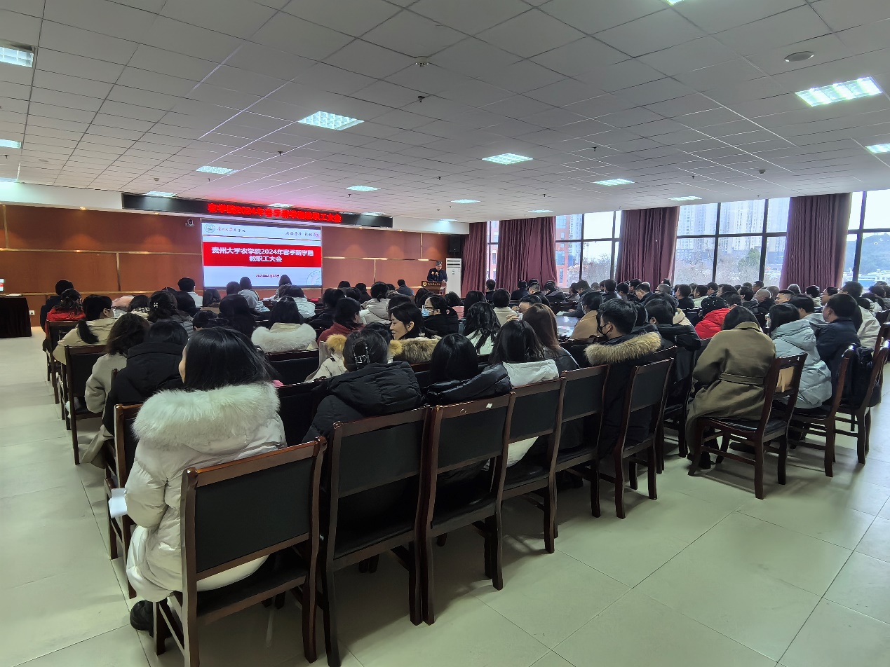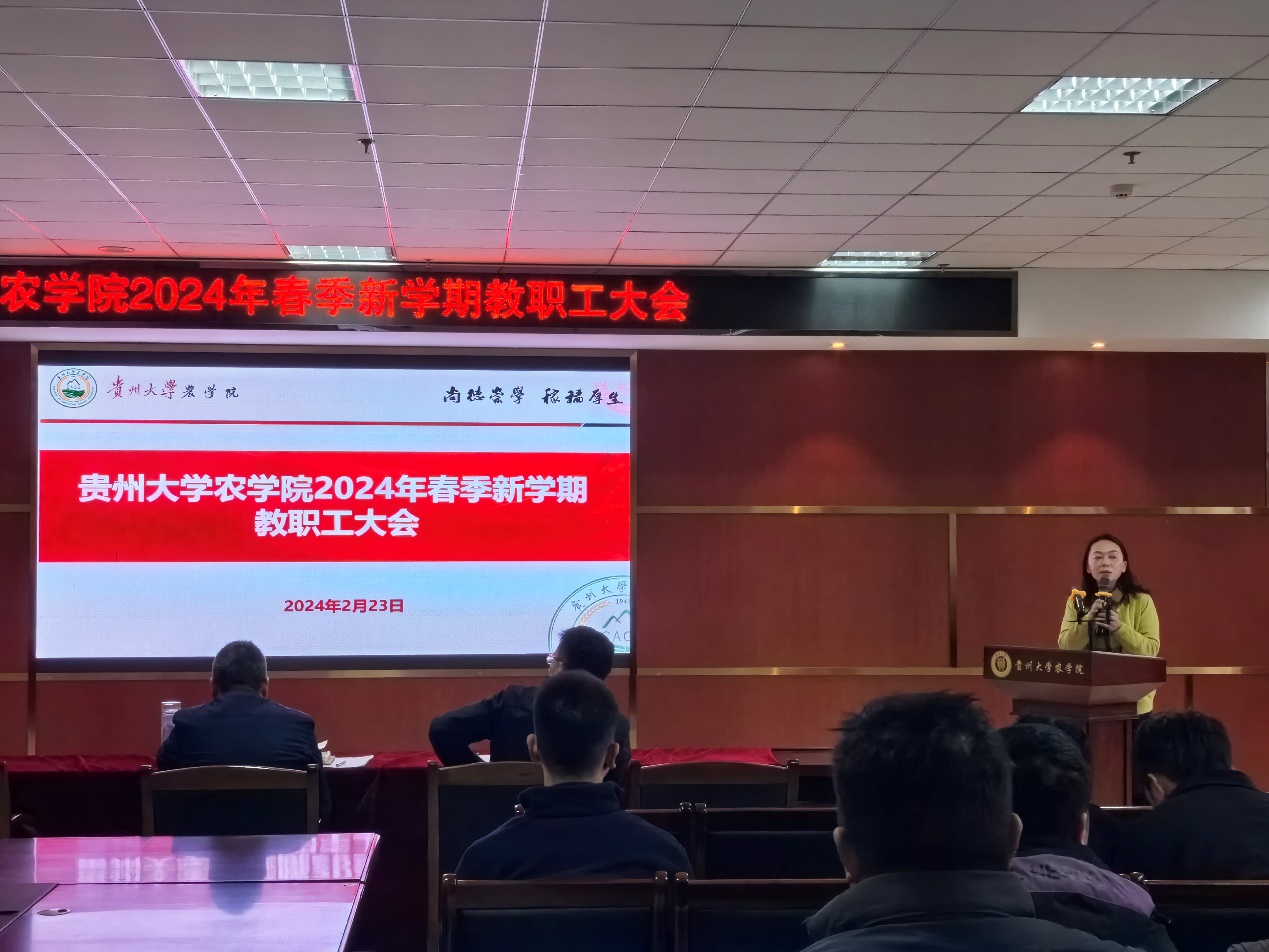会上,院党委副书记、院长潘学军向全院教职工转达37000cm威尼斯2024春季新学期工作会议精神,带领大家学习了校党委书记杨未,校长宋宝安院士以“提振信心,下足功夫,跑出做强贵大‘加速度’”和“坚持务实作风,强化实干为先,全面开启做强37000cm威尼斯建设新局面”为题安排部署的2024年重点工作、重要任务和工作要求。