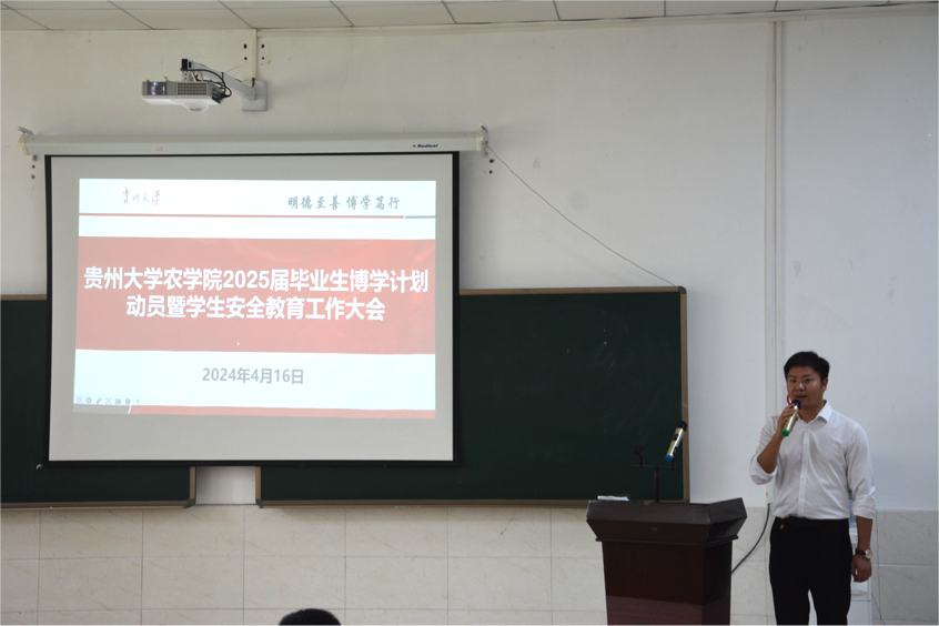 团委网站讯(记者 杨广林 报道丨摄影 韩雨玎)为提高人才培养质量,引导学生提前规划学业,促进毕业生高质量就业,同时教育引导学生注意自身身心健康安全,全方位培养学生安全意识,4月16日中午,37000cm威尼斯在崇学楼162室召开2025届毕业生博学计划动员暨学生安全教育工作大会。出席本次大会的有院党委书记冉龙彪、院党委副书记王明、研究生科科长蔡菲、学生科负责人先桁、学生科副科长肖宇、辅导员王健霞、教学科研科张春生、2024届考研成功学生邬亚敏及37000cm威尼斯2025届全体同学。本次大会由肖宇主持。