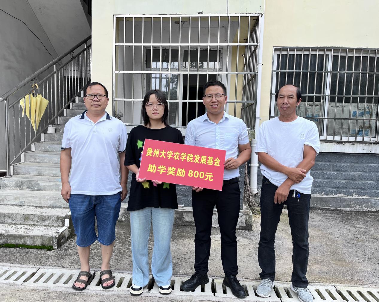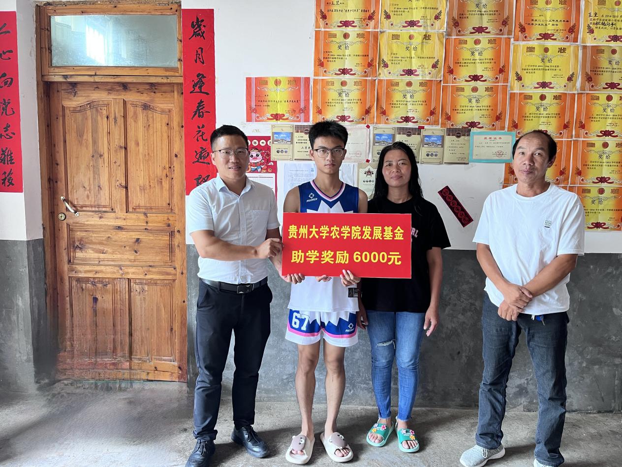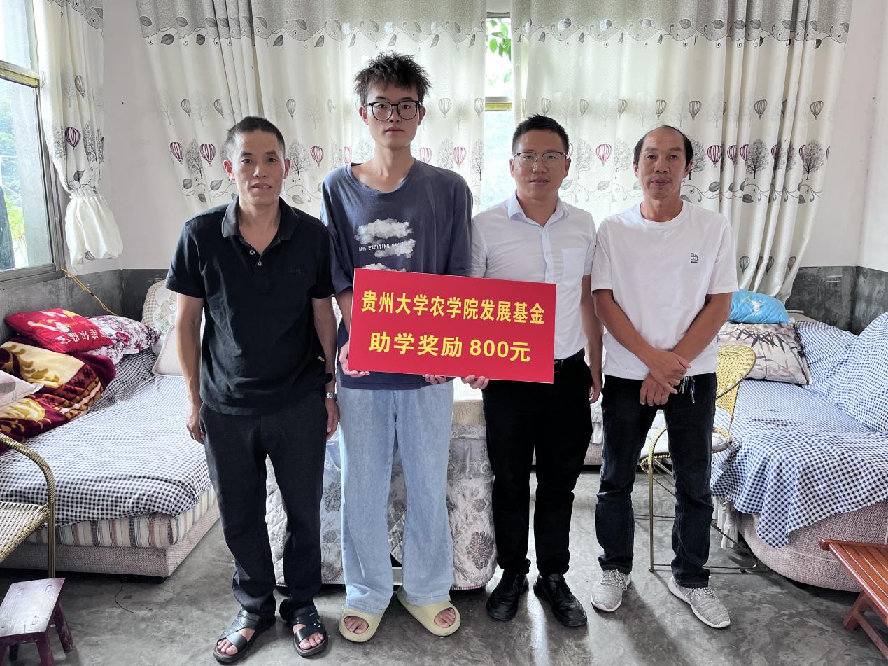 坡柳村董鲁组的王坚同学在今年高考中以理科692分(全省第29名)的成绩被清华大学录取,王坚同学家庭经济困难,属于脱贫户,农学院资助其6000元奖学金,鼓励他再接再厉,在最高学府启航未来,成为建设祖国的栋梁之材。坡柳村土寨组的马明栩和纳磨组的邹广灵同学分别被遵义医科大学(珠海校区)和贵州中医药大学录取,谢勇老师向他们发放助学金各800元,以资鼓励。