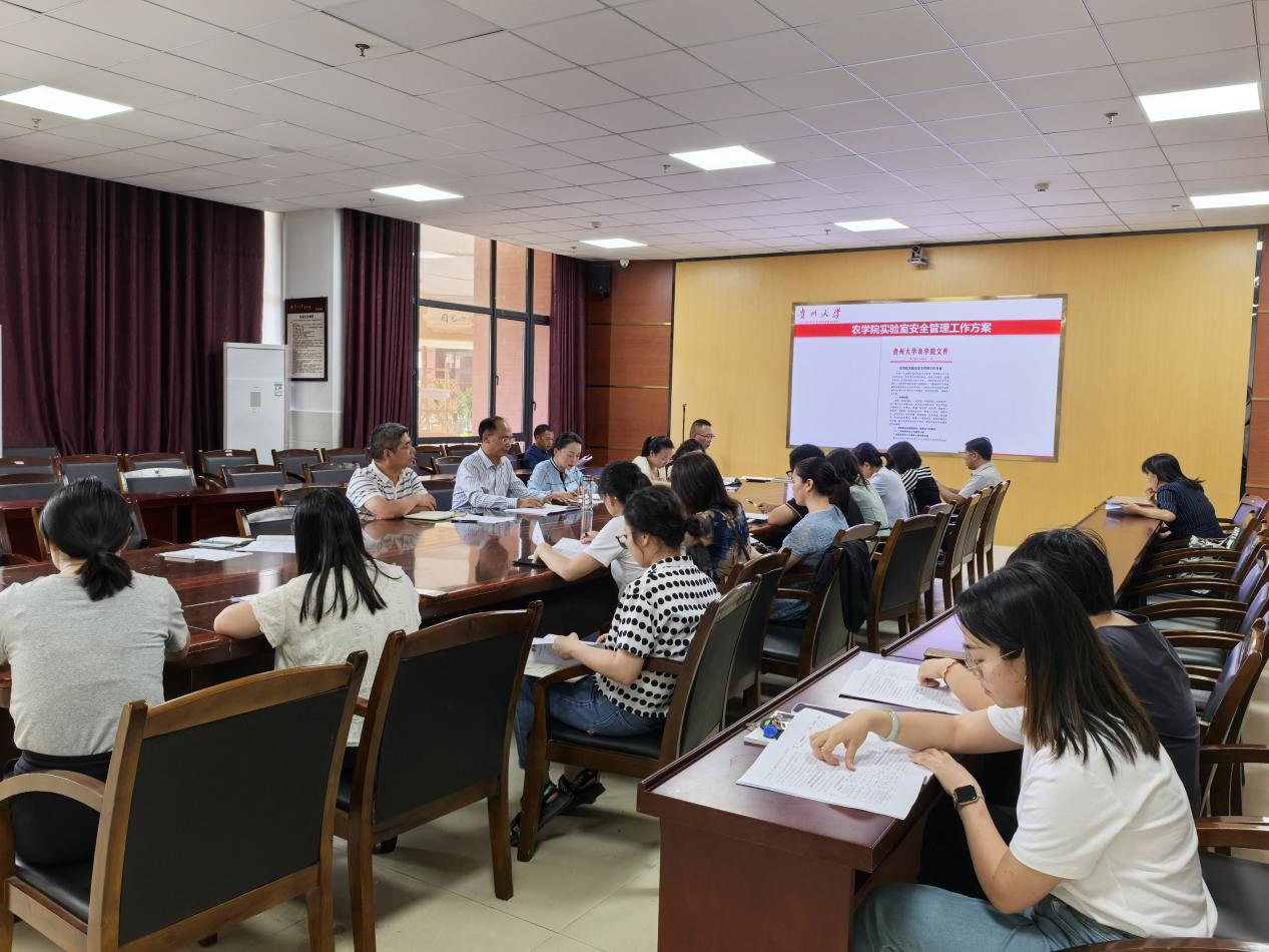2024年9月20日中午,农学院召开实验室安全管理学习及工作部署会,院党委书记冉龙彪、院长潘学军、各系系主任和实验中心全体实验人员参加,会议由副院长张万萍主持。