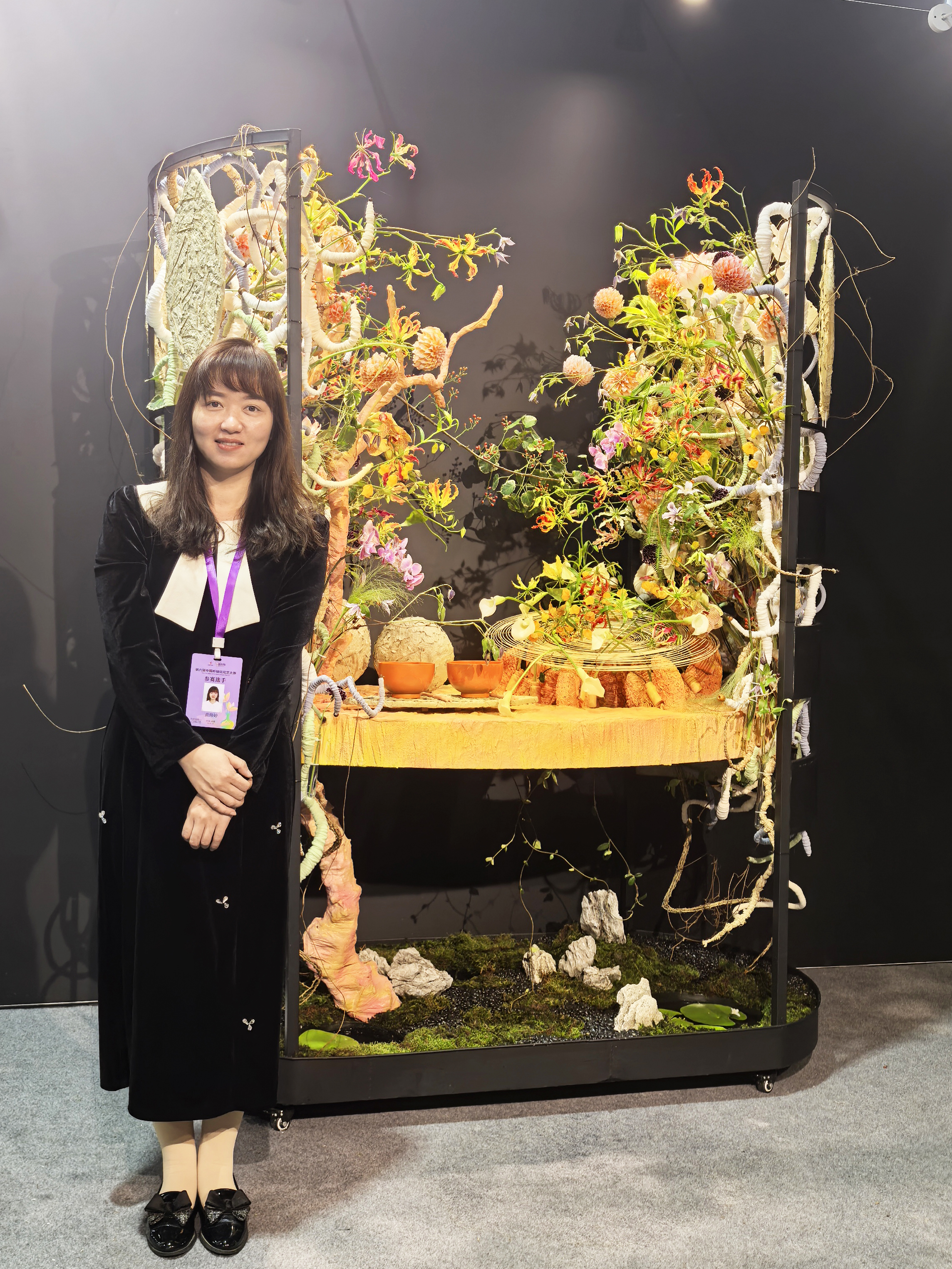 黄玮婷主讲《插花艺术》课程,不仅在教学上精益求精,还积极投身于花艺实践,通过参赛实现学以致用,以赛促教,不断提升自己的教学水平和艺术修养。