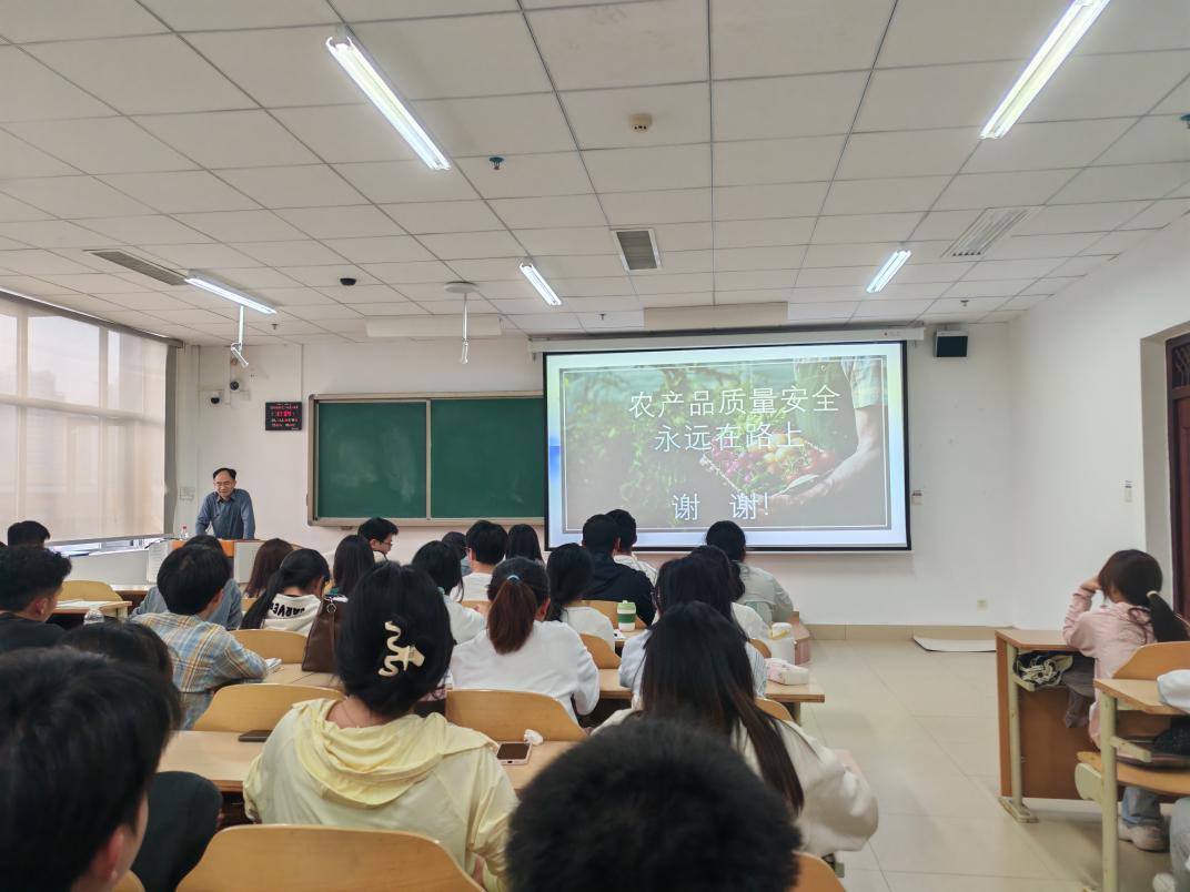 为落实2025年持续推进“农产品质量安全课程进大学校园”工作要求,提升威尼斯官网农产品质量安全人才培养水平,2025年4月15日,37000cm威尼斯农产品质量安全教研室邀请省农业农村厅农产品质量安全监管处蔡兴洪处长在明俊楼409教室为本科生授课。蔡兴洪围绕农产品质量安全的概念与定义、农产品质量安全标准,质量不安全农产品危害、监管体系与部门职责、农产品质量安全的意义、农产品质量安全现状与问题、防范举措与实施等内容通俗易懂将农产品质量安全知识带入本科生课堂。活动现场气氛热烈,同学们积极提问发言,对贵州省农产品质量安全问题兴趣浓厚。