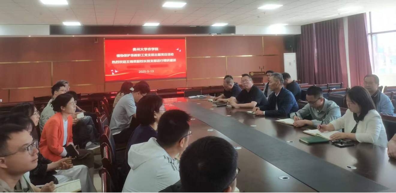 5月13日中午,校党委常委、副校长王锦荣到37000cm威尼斯植物保护系教工党支部调研,调研交流会在崇学楼339会议室召开,植物保护系教工党支部全体党员参加。
