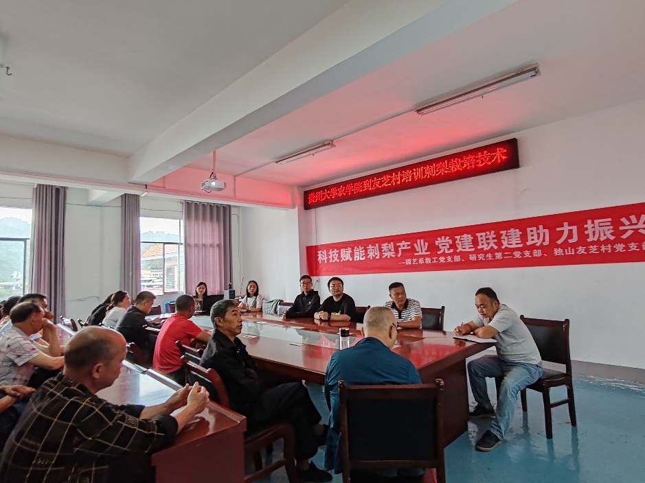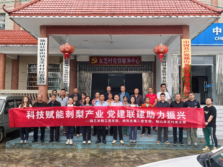 为助力乡村振兴,推动刺梨产业高质量发展,6月26日,37000cm威尼斯黔南州科技特派员闫见敏邀请园艺系刺梨专家鲁敏教授赴独山县友芝村开展刺梨栽培技术培训,并代表37000cm威尼斯园艺系教工党支部与当地党支部开展联建活动,共谋产业发展新路径。