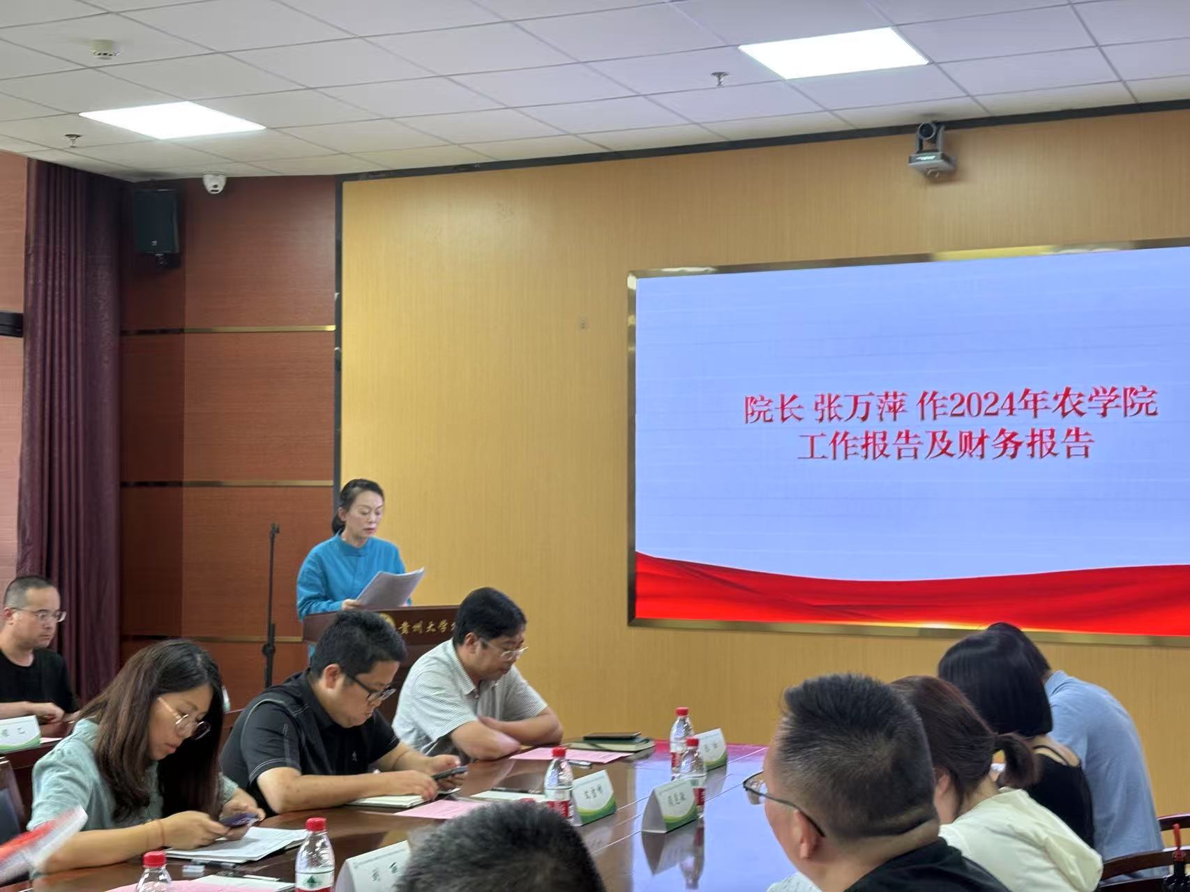 会议首先听取并审议了张万萍院长所作的学院工作报告,报告全面回顾了学院在加强党建、人才培养、科学研究、科教产教融合、社会服务等方面取得的成绩,明确未来努力方向。审议通过学院财务工作报告,保障教职工对财务工作的知情权与监督权。