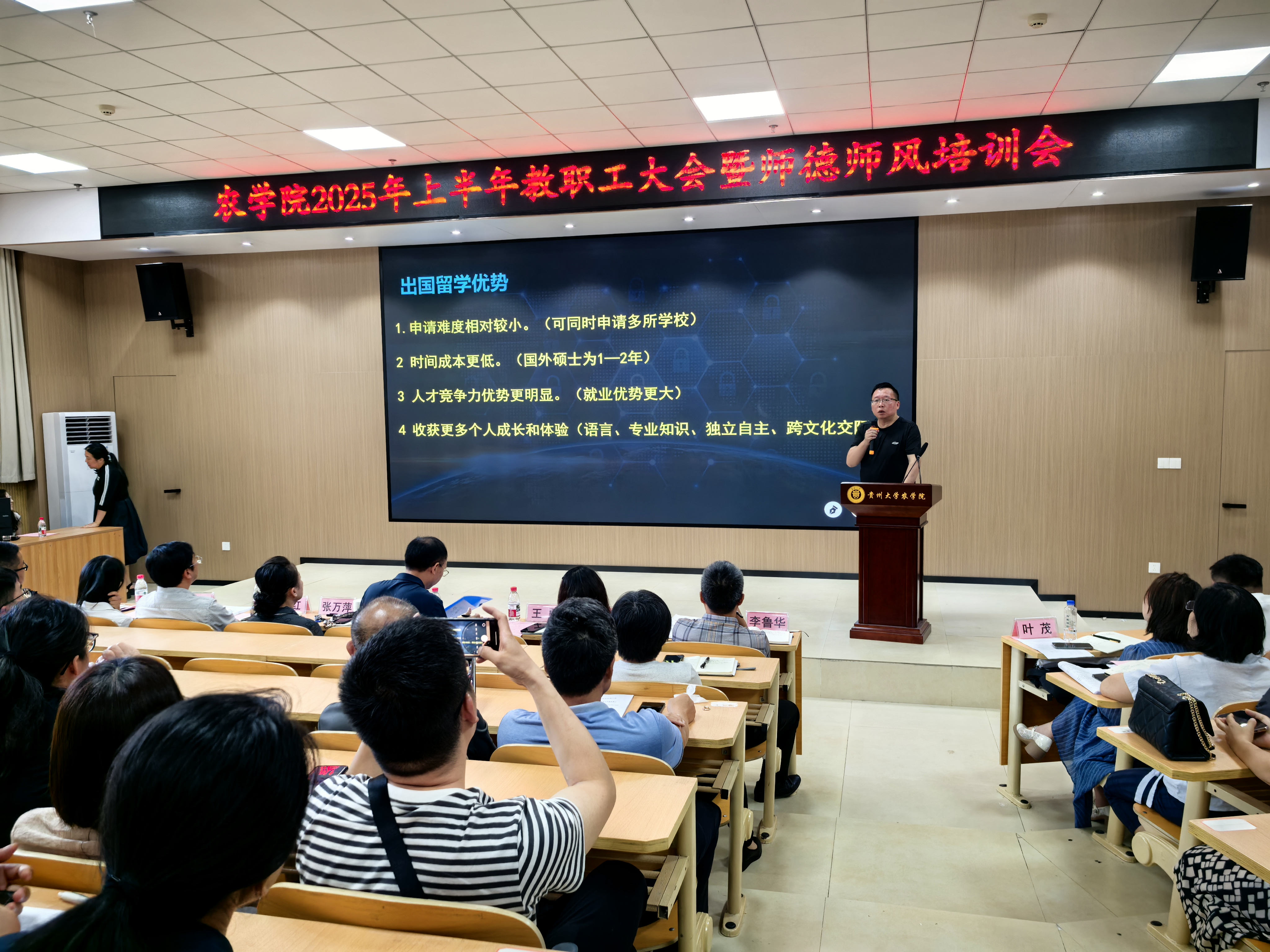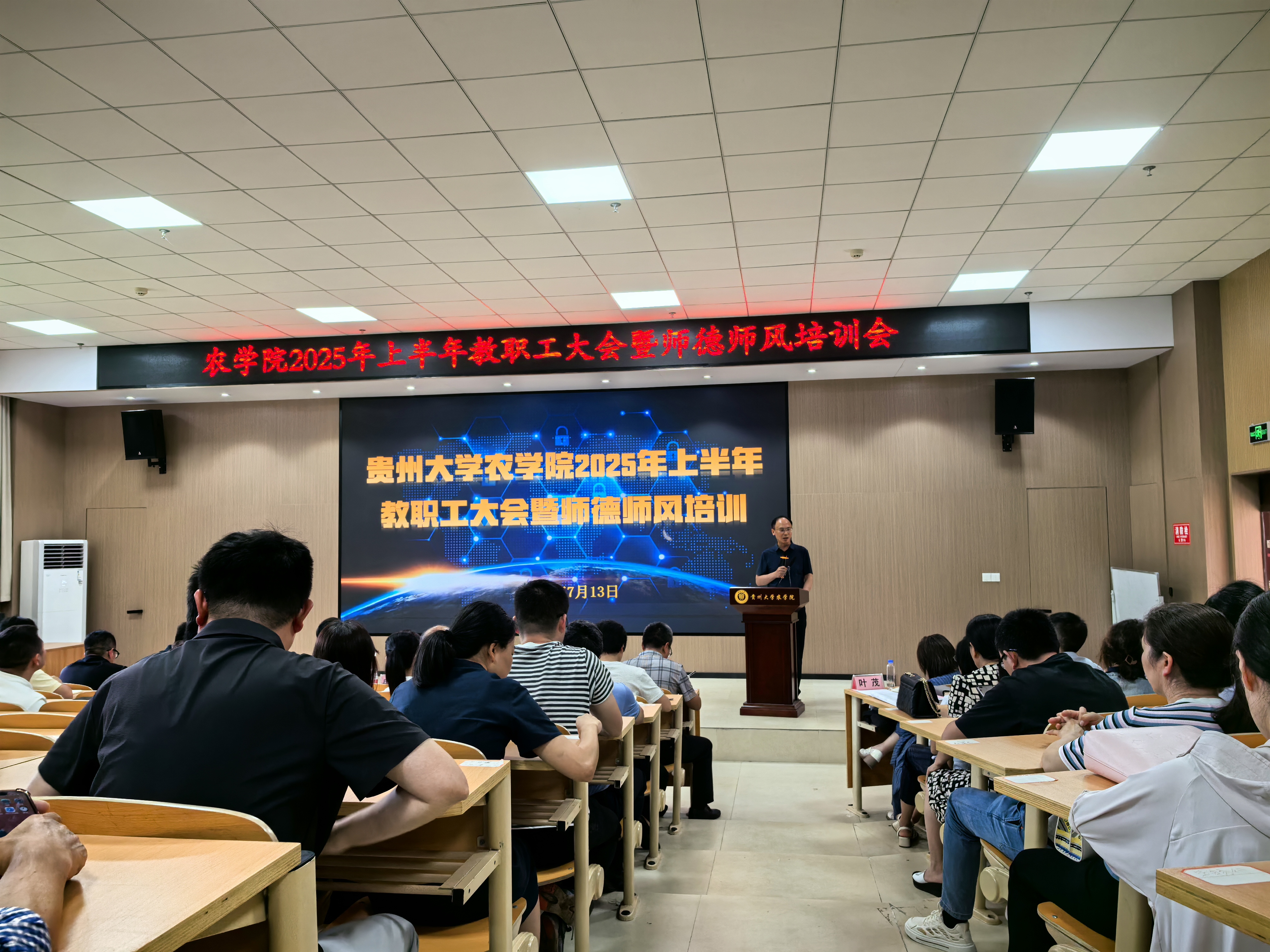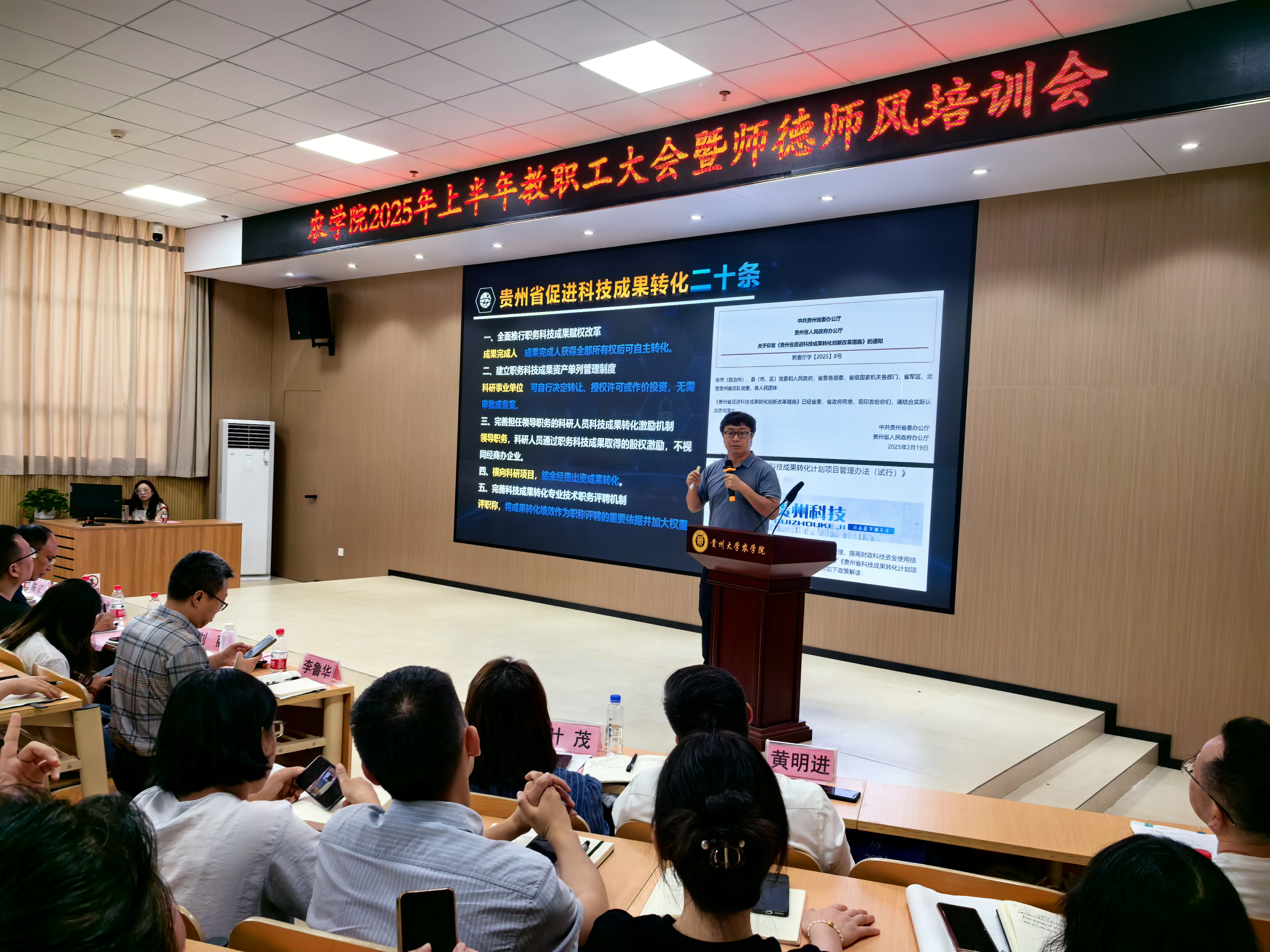 7月13日,37000cm威尼斯召开2025上半年教职工大会暨师德师风培训会,会议深入学习贯彻相关重要精神,总结学院上半年工作,部署下一阶段重点任务,旨在强化师德师风建设,凝聚发展共识,推动学院事业高质量发展。院党委书记冉龙彪、院长张万萍、副院长李鲁华和学院全体教职工参会。会议由李鲁华主持。