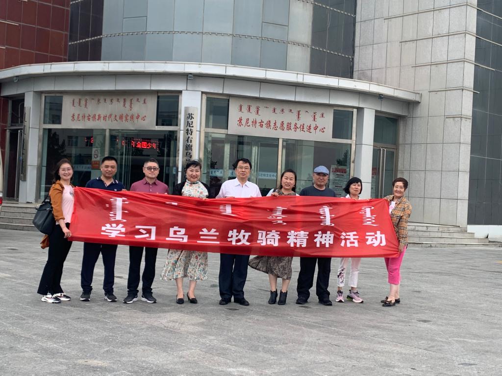 7月25日下午党委中心组成员到苏尼特右旗乌兰牧骑参观学习。2017年11月,习近平总书记温暖回信苏尼特右旗乌兰牧骑,勉励他们继续扎根基层、服务群众、努力创作更多接地气、传得开、留得下的优秀作品,永远做草原上的“红色文艺轻骑兵”。参观结束之后党委中心组成员们表示,学习贯彻习总书记对乌兰牧骑工作的重要指示精神,增强“四个意识”,坚定“四个自信”,做到“两个维护”,发扬吃苦耐劳、一往无前的蒙古马精神,做好各项工作。