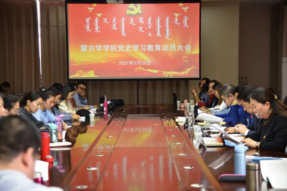 会上,首先由乌日其木格同志解读学院党史学习教育工作方案,对学院党史学习教育作了具体的安排。随后由白宝成同志传达学习了中央、自治区党委和高校工委、教育厅、学校党委党史学习教育动员会议精神,分别围绕把握学习内容,高质量完成必学内容;把握进度安排,高质量完成各项规定动作;遵循党史学习教育特点规律,自觉主动学;树立正确党史观,确保党史学习教育正确导向;学用结合,注重学习效果;突出特色,融会贯通等方面对学院党史学习教育活动进行了全面部署。他强调,2021年是中国共产党成立100周年,“十四五”开局之年,在“两个一百年”奋斗目标历史交汇的关键节点,在全党集中开展党史学习教育,意义重大。我们一定要做到学史明理、学史增信、学史崇德、学史力行,学党史、悟思想、办实事、开新局,以昂扬姿态奋力开启全面建设社会主义现代化国家新征程,以优异成绩迎接建党一百周年。