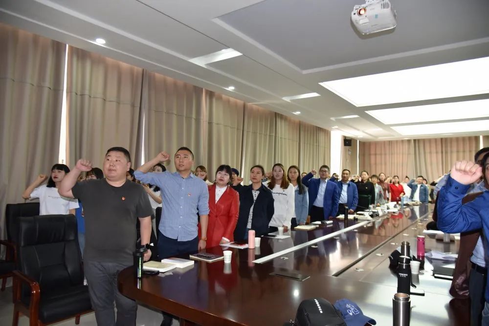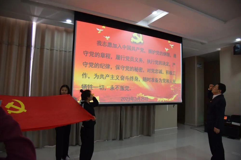 会议第三项全体党员重温入党誓词,由白宝成同志领誓。